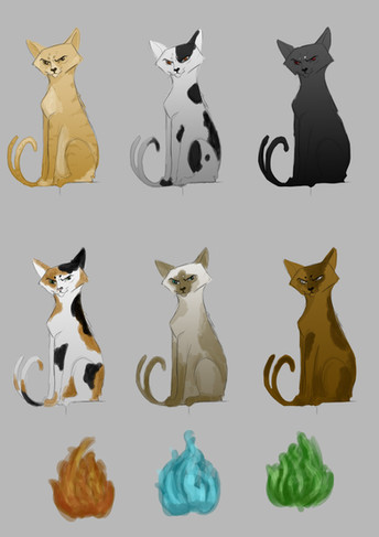 The Nekomata is a normal domestic cat which has grown old and died. As the spirit of this animal comes back it's tail splits in two and the cat is now a Nekomata, which has the power of necromancy and also can control fire. Nekomata's love to set fires. Here is my initial final painting for this creature.