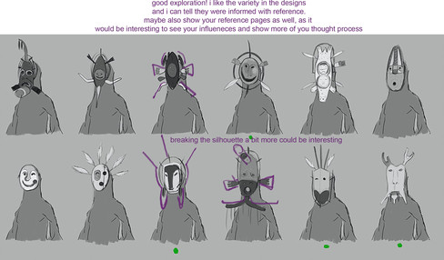 This is some of the really helpful feed back from Will. I took his advice and iterated some of the design, like changing the shape of the weapon this character carries to make the design more interesting.